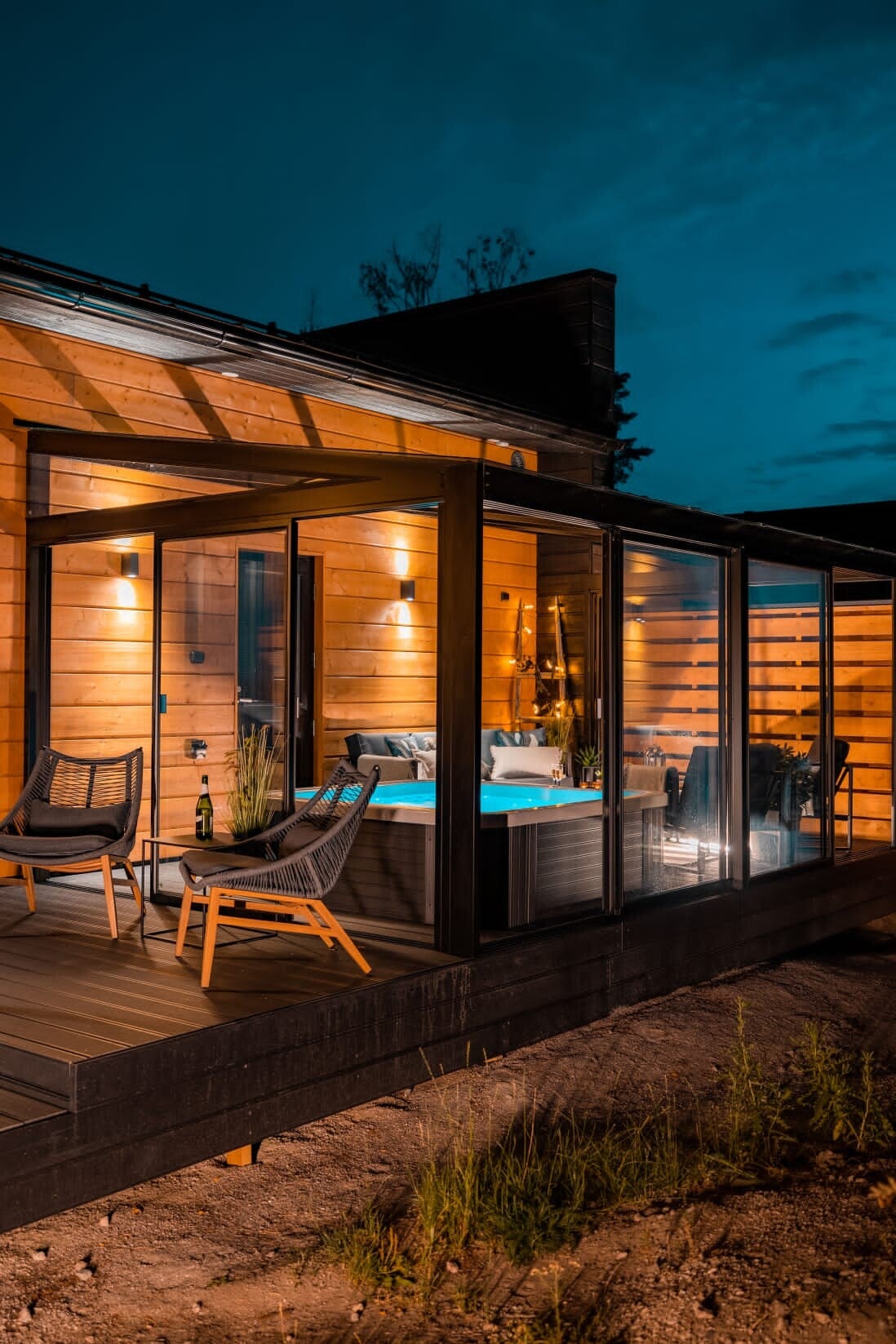 Lasiterassi laajentaa kotisi käyttöaluetta ja tuo luonnonläheisyyden tunnetta ympäröivään tilaan.